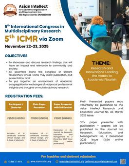 Crossing disciplinary boundaries requires courage and a willingness to step outside one’s comfort zone. It means challenging established norms, embracing unfamiliar perspectives, and collaborating with others whose expertise may seem far removed from one’s own. This brave move can lead to innovative breakthroughs and profound discoveries. Asian Intellect, Inc. is a platform where researchers can gather to collaborate and present their research to a wide audience, both in the Philippines and around the world. We exist to serve the needs of researchers while providing a venue for the publication of their work. With our dedication to advancing knowledge for the greater good, Asian Intellect continues to shape the landscape of academic research in education and the social sciences. By offering opportunities for interdisciplinary dialogue and collaboration, we support researchers in overcoming the barriers that limit their potential.